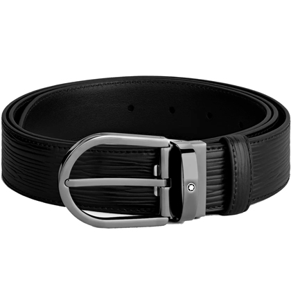 Черный кожаный ремень с подковообразной пряжкой 35мм от магазина премиальных ручек Premium Pens в Комсомольске-на-Амуре.