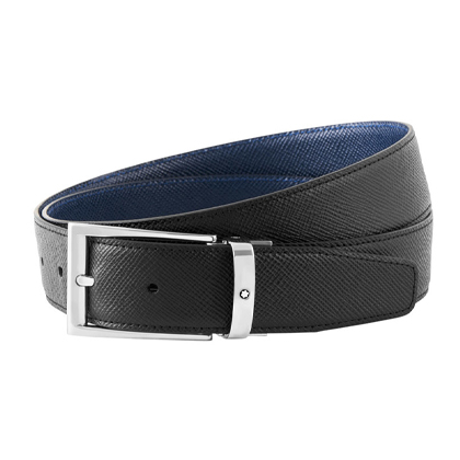 Двусторонний ремень из кожи черного и синего цвета 35 мм от магазина премиальных ручек Premium Pens в Комсомольске-на-Амуре.