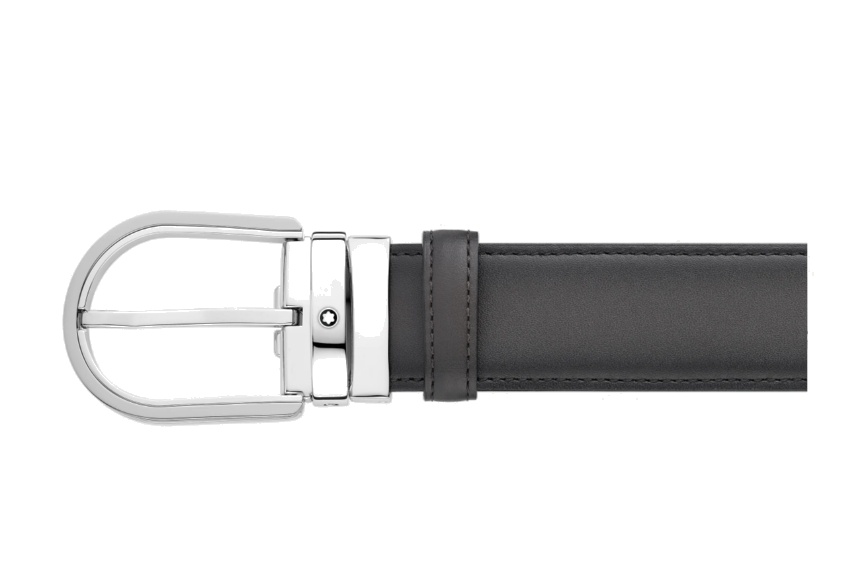 Кожаный ремень с пряжкой в форме подковы серого цвета 35 мм от магазина премиальных ручек Premium Pens в Комсомольске-на-Амуре.